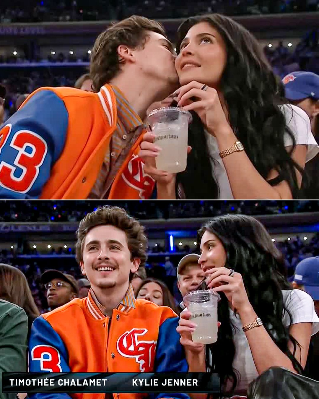 DB真人旗舰凯莉-詹娜今年季后赛一直有陪同甜茶观看季后赛的比赛,上一次是4月29日,两次尼克斯都赢球了。昨日的比赛中,甜茶和詹娜场边还亲密互动。
